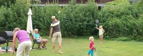 Korbschaukel. Das große Maislabyrinth nebenan ist das ideale Versteck. Piratenfeste und Indianerpartys sorgen für Abwechslung.