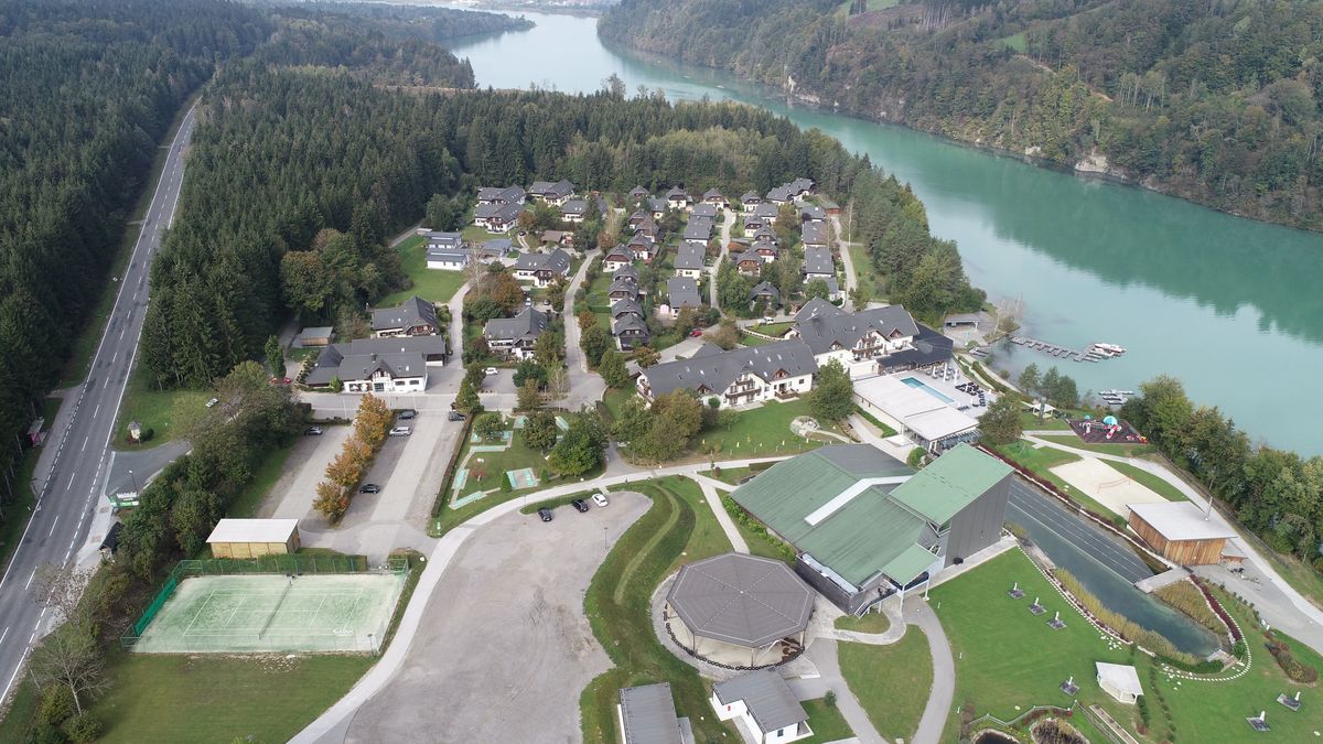 liegt ca. 2 km außerhalb des Ortes Feistritz im Rosental, unmittelbar am herrlichen Draustausee der hier eine Länge von etwa 18 km aufweist. Im Dorf haben wir sieben 6-Familienhäuser und etwa 35 Einfamilienhäuser. Die Häuser werden teilweise von ihren Eigentümern selbst bewohnt, teilweise fest vermietet oder auch, so wie wir das machen, an Feriengäste vermietet.
